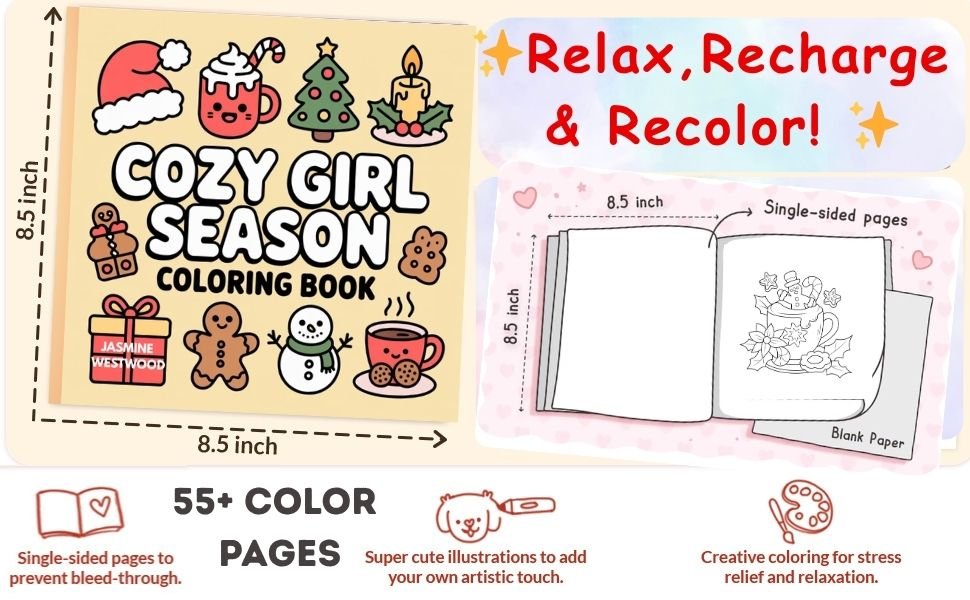✨ Cozy Girl Season: 55+ One Sided No Mess Color Pages, A Cozy & Cute Bold and Easy Coloring Book for Adults, Women & Teens, A Perfect Gift Festive Christmas Coloring Book for Adults Calm, Comfort, and Creative Festive Christmas Scenes for Mindful Joy ✨