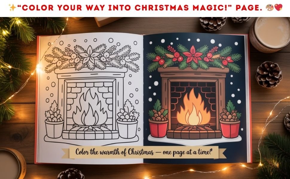 Unwind and celebrate the season with heartwarming designs inspired by winter magic, holiday lights, and peaceful hygge moments. This coloring book for adults christmas blends creativity with calm, making it the ideal stress-relief companion for anyone who loves the holidays. Whether you’re sipping cocoa or sitting by the fire, this adult coloring book for christmas brings festive comfort to your fingertips.